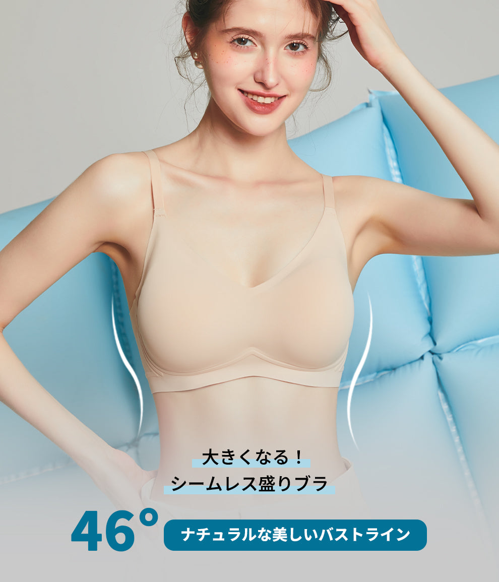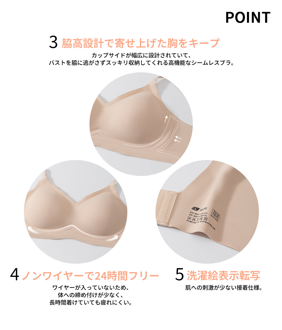カップサイドが幅広に設計されていて、バストを脇に逃がさずスッキリ収納してくれる高機能なシームレスブラ。